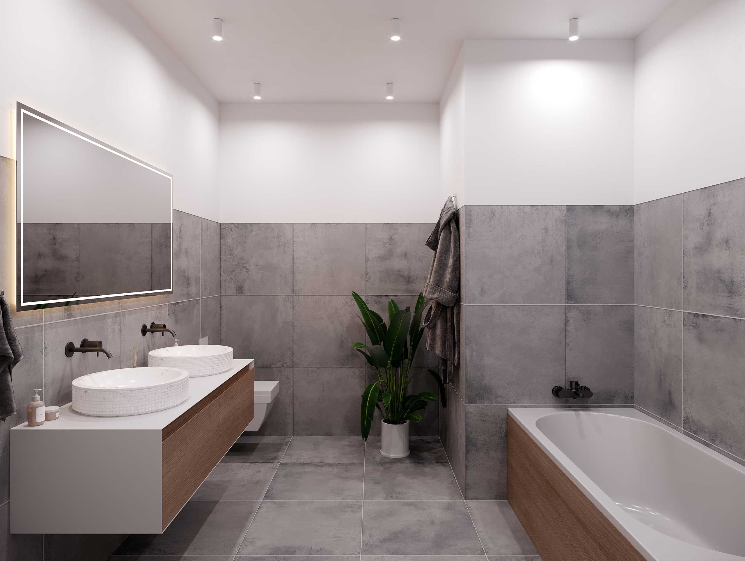 Baderaum mit Badewanne, Wandklosett,